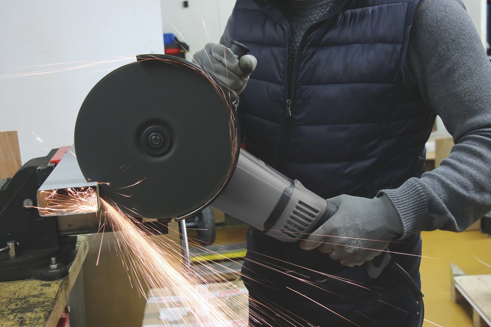Amoladora angular 230mm de 2400W, arranque progresivo.